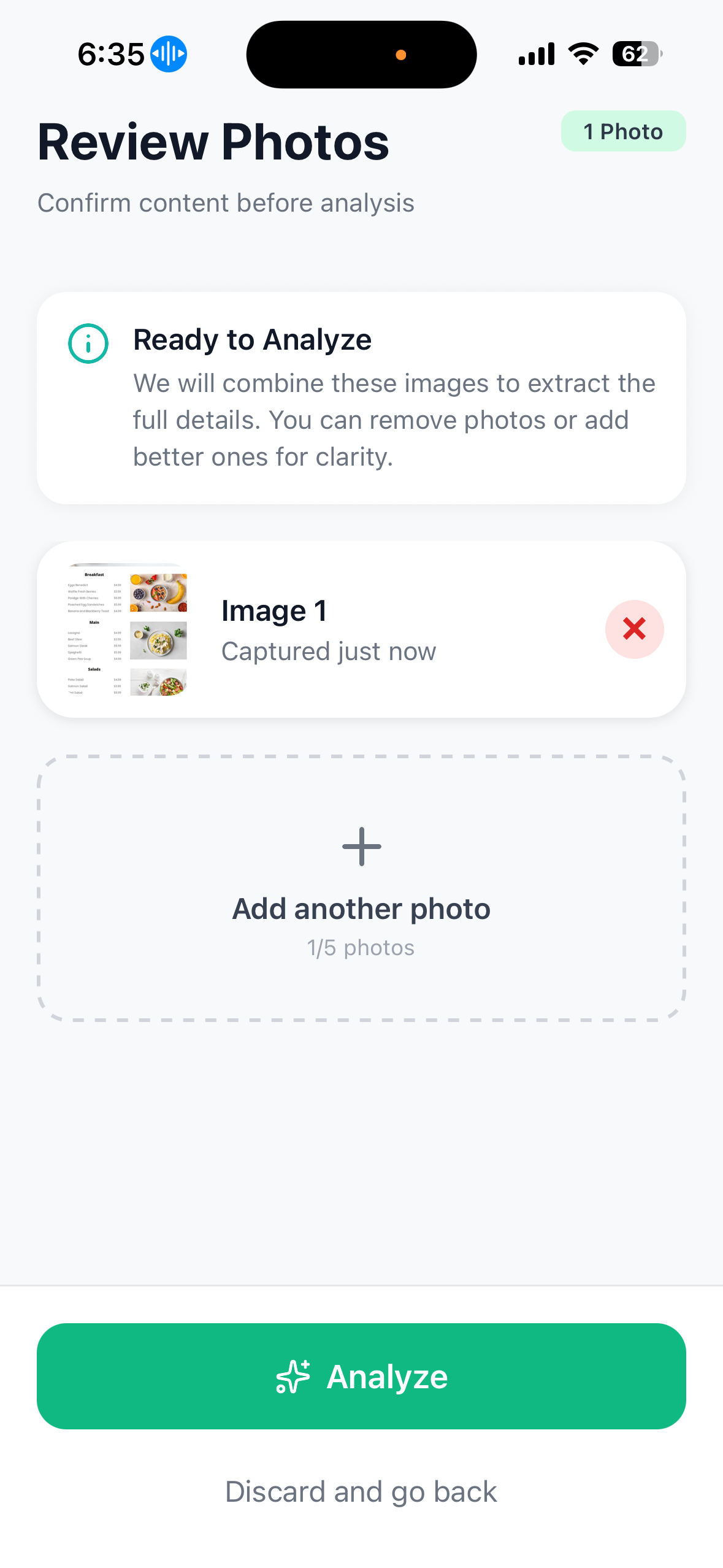 Snap or upload a menu